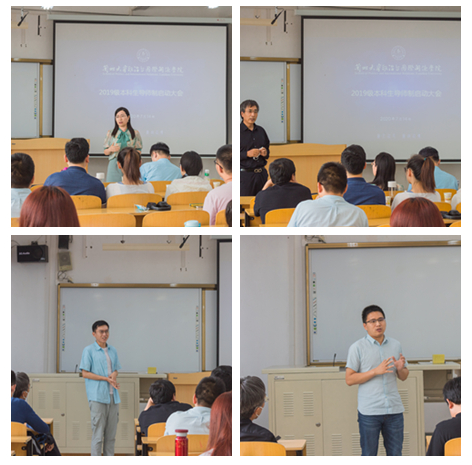 大会伊始,首先由陈小鼎教授对本科生导师制基本情况进行介绍。他从师生关系、学生发展等角度,对学生如何从中受益,以及对导师有何要求进行阐述。他表示,本科生导师制的实施,一方面要加强师生间关系,让导师成为学生的引路人;另一方面,导师要对学生的学业和就业规划提供参考意见,做到教学相长。紧接着,教师代表依次发言,介绍本人基本情况以及研究方向,使学生进一步明确自己的选择对象。最后,贾海燕副书记对大会进行总结,大会圆满落幕。