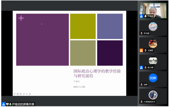 教师做了题为“国际政治心理学的教学经验与前沿研究”的线上讲座。本次讲座由副院长陈小鼎教授主持。