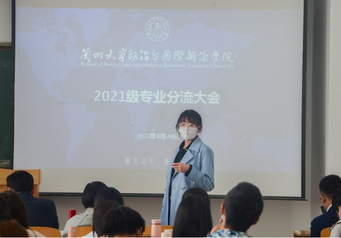 于4月28日下午2:30在天山堂A201召开了2021级本科生专业分流大会,学院党委副书记贾海燕,政治学系主任肖涵、副系主任米鹏举,国际政治系主任李益斌、副系主任靳晓哲,教师代表李泽和教学秘书王婉君参加了本次会议。
