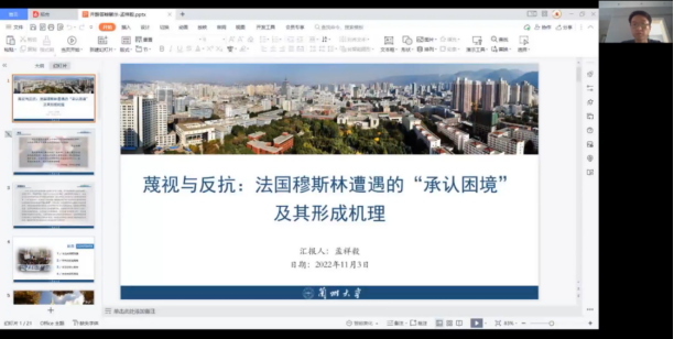 答辩伊始,各组同学向评审老师阐述了自己的研究课题,主要从选题背景、选题意义、研究思路、文献综述等主要方面进行了详细的汇报。同学们的论文选题广泛,关注专业学科前沿话题,涉及全球治理、能源合作、人工智能、基层治理、生育政策等诸多领域,题目新颖,具有突出的现实研究意义。随后,各组评委老师针对本组同学的汇报内容和开题报告中的论文题目、研究方法、研究内容和研究框架等方面进行了详细点评,并结合自身研究专长,给出了针对性和建设性的修改意见。最后,各组老师针对本组学生开题答辩汇报情况做出总结。