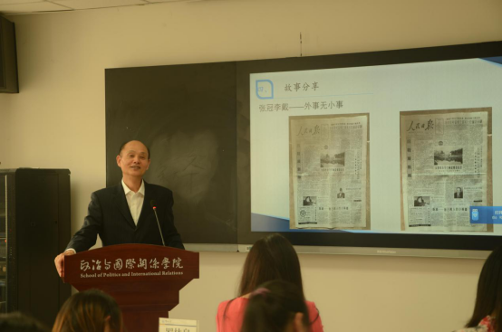 开营仪式结束后举行了两场主题讲座。首场讲座由罗林泉大使主讲,讲座主题为《外交艺术与实践》。罗大使从实际外事工作经历出发,为大家生动地讲解了中国外交的基本情况及国际外交礼仪,并强调了外交中“平衡、对等、惯例”等原则的重要性。第二场讲座由曾向红教授主讲,讲座主题为《国际关系研究中的问题意识》。曾老师为同学们讲解了问题意识和具有一定学术价值的具体问题的区别,告诫各位同学要潜心研学,从问题入手,在今后的学术道路上做出优秀的成果。