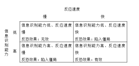 作者认为,反恐信息的获取与执行速度是影响反恐效果的重要因素。第一,面对执法部门的打击,恐怖组织往往将活动网络隐藏在平民当中,国家需要足够的信息去识别恐怖分子。第二,为了提高自身的安全性,恐怖分子藏匿的位置会不断变更。在这样的背景下,反恐信息是有时效性的,国家需要迅速采取行动。因此,信息识别与反应速度的组合会影响到国家的反恐能力,进而影响到反恐效果。