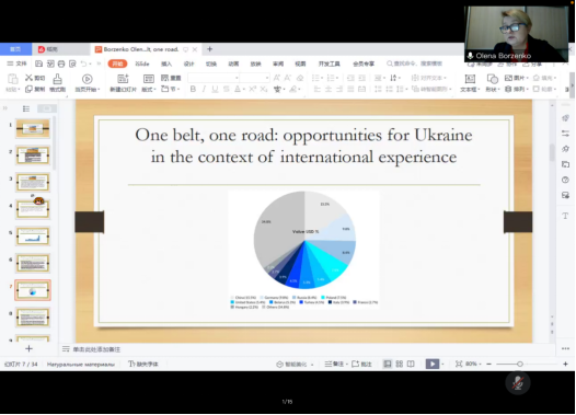 讲座伊始,耶列娜研究员指出,与许多国际观察人士的预期不同,“一带一路”在新冠肺炎疫情的巨大冲击下并没有失去动力。相反,它呈现出一种快速增长的态势。未来“一带一路”倡议将更加关注健康和绿色发展领域。疫情后,随着投资和贸易需求的进一步增加,“一带一路”倡议将在许多国家的经济复苏与基础设施重建中发挥更大作用。乌克兰作为首个支持“一带一路”倡议的国家,具备物流便利、位于与欧盟的自由贸易区两点优势。为更好地发挥在欧亚大陆的过境作用,乌克兰必须实现边境码头、铁路和公路的现代化建设。