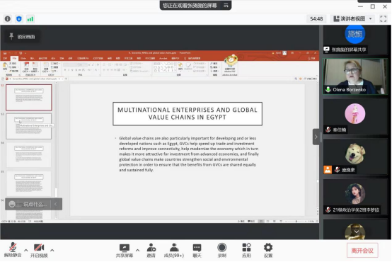 再次,耶列娜研究员分别介绍了中国、印度尼西亚、乌克兰、乌兹别克斯坦、埃及以及墨西哥参与全球价值链的基本情况,具体包括这些国家在全球价值链中所扮演的角色、参与全球价值链对国家经济发展产生的影响,以及跨国公司的发展情况等。