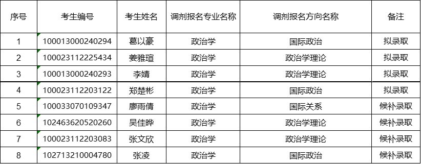 如因拟录取考生放弃资格或招生指标动态调整,出现名额空缺时,其他满足条件的考生将依次递补。