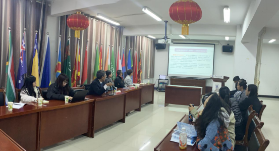 在业务观摩与交流过程中,兰州交通大学国际教育学院张国锦院长就来华留学生招生就业、管理、教学、科研及外事等工作做了介绍,尤其针对“服务一带一路建设”、“促进国际交流”、“弘扬中国智慧”、“中华文化外宣”主题在留学生培养方面所做的工作做了详细介绍。