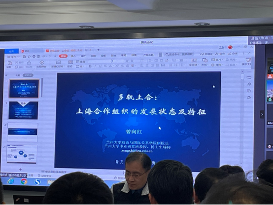 教师曾向红教授、韦进深副教授参加本次研讨会并进行了线上发言,曾向红教授的发言题目是“多轨上合:上海合作组织的发展状态及其特征”,韦进深副教授的发言题目是“参与情境、博弈策略与后疫情时代中国的国际能源合作”。