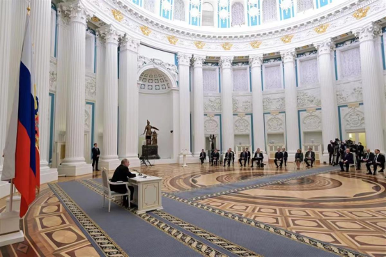 普京在克里姆林宫主持召开了俄罗斯联邦安全会议(来源:美联社)