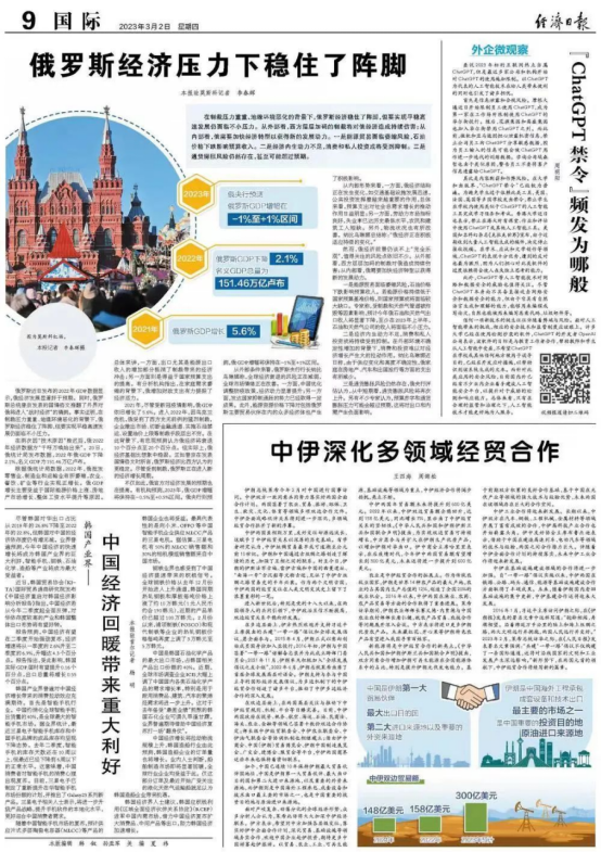 土库曼斯坦研究中心主任王四海教授、助理研究员周筠松在《经济日报》发表题为“中伊深化多领域经贸合作”文章,全文如下://paper.ce.cn/pc/content/202303/02/content_269838.html