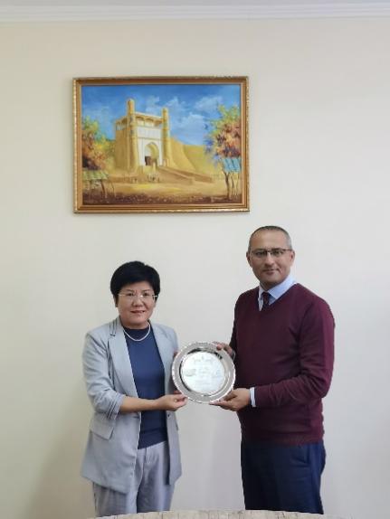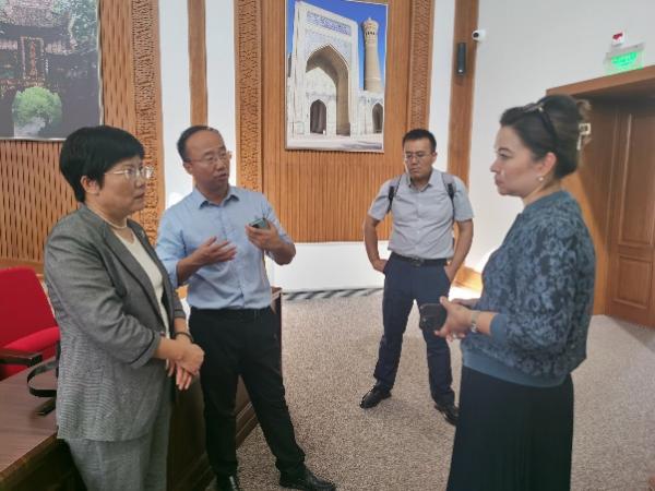 10月3日,代表团访问撒马尔罕国立大学,与该校副校长胡什瓦科夫·哈吉姆就开展师生互换交流活动、组织暑期学校、联合举办研讨会等内容进行了深入讨论,并与该校历史系、语言学系教师进行了座谈交流。此外,代表团还应邀参观了该校的博物馆。