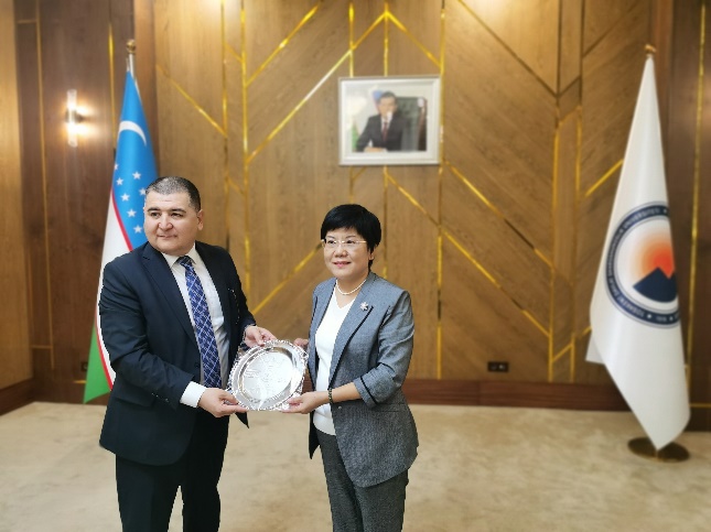 10月4日,代表团成员与乌兹别克斯坦国立塔什干东方大学副校长阿卜杜拉耶夫·诺迪尔进行了座谈,就进一步加强校际合作交换了意见,并与该校中国学系、东方文明和历史学系教师进行了学术交流。