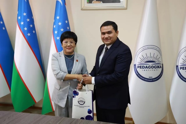 9月30日,代表团与乌尔根奇国立师范学院副校长阿卜杜拉耶夫··蒂约尔戎、国际合作处处长萨杜拉耶夫·加洛拉丁等人举行会见,并就两校合作事宜交换了意见,还与该校语言学和历史学系、外语教研室的多位教师进行了座谈。