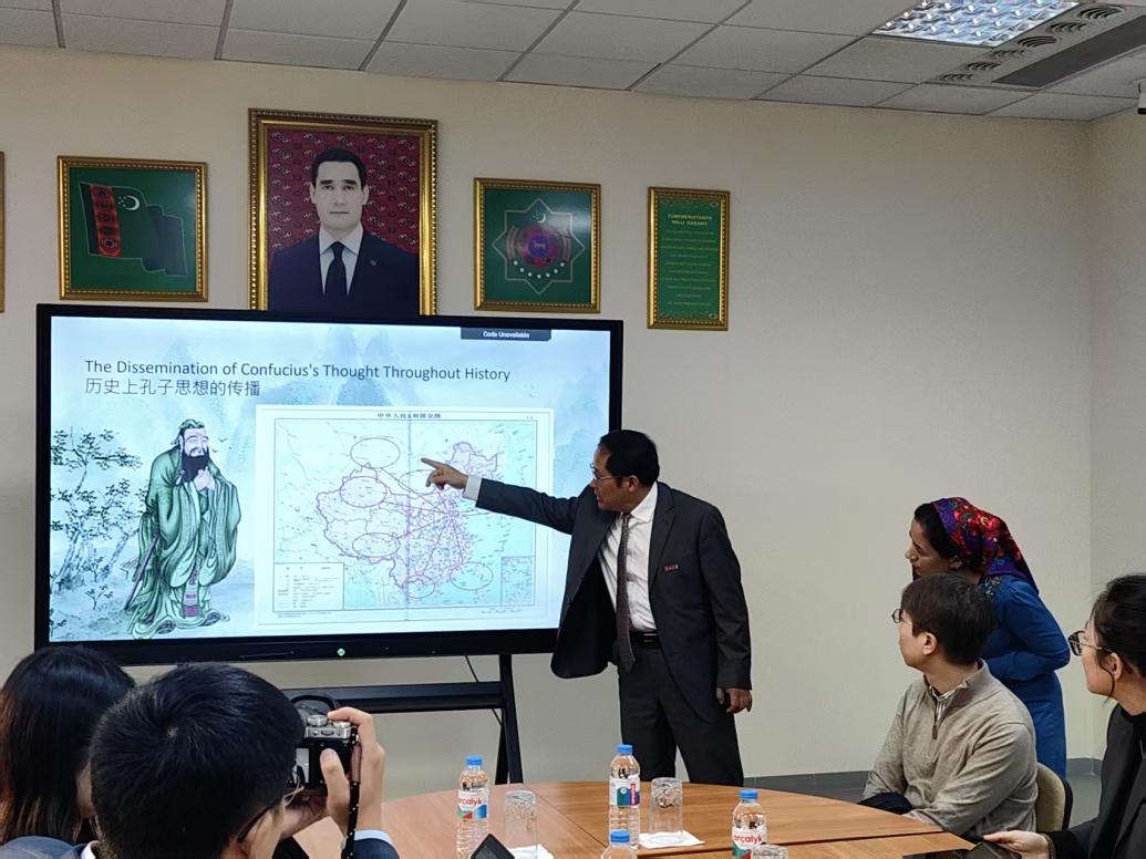 王四海教授为土库曼斯坦外交部国际关系学院大学生作“中国和平文化”主题报告
