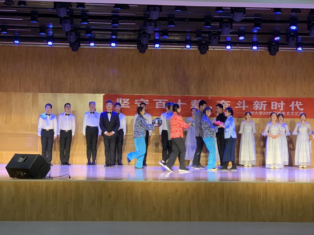 文体部负责人刘晓和饶庆华、组织部负责人王育萱,带领23名19级新生参加了本次文艺汇演比赛。