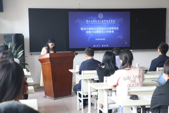 随后,2020级研究生班主任孙秀文副教授发言。孙老师向新生介绍了学院的总体概况以及研究特色,从德智体美四个方面对新生提出了殷切的期望。孙老师鼓励同学们珍惜时间、继续精进,培育“独立之人格,自由之思想”,在有限的时间内获得最大的收获。