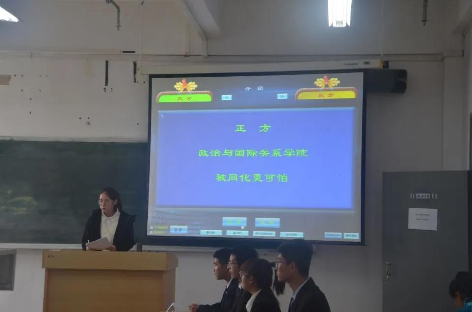 比赛开始,首先进入的是开篇立论环节。我方黄静蕾同学围绕被同化更可怕从个体和群体两个方面展开论述,将我方论点铺展开来。随后在双方立论及四质一环节结束后,双方进入第二阶段申论质询环节。在经过初期的试探后,双方开始了正式的交锋,气氛逐渐热烈了起来。