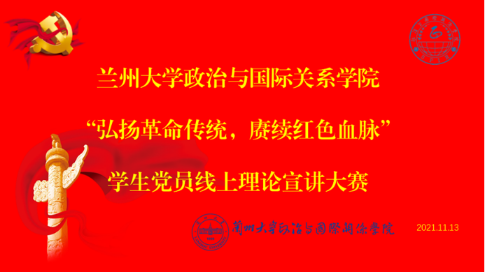 于11月13日上午9时在线上举行以“弘扬革命传统,赓续红色血脉”为主题的学生党员理论宣讲大赛。学院党委副书记贾海燕、研究生辅导员雷环瑞、本科生辅导员田歌以及学院党支部全体成员参加此次会议,会议由本科生辅导员田歌主持。