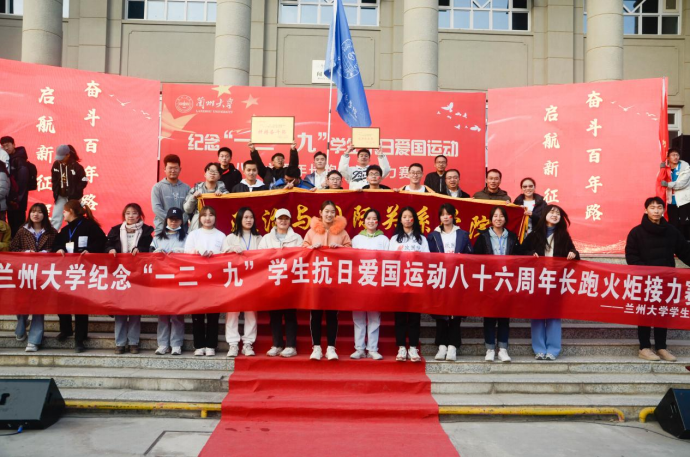 于12月9日14时30分在榆中校区闻欣堂前举行本科生“一二•九”长跑火炬接力赛。比赛开始前,首先由国旗护卫队手持各学院院旗庄严地走入场中,所有同学齐唱国歌。随后,党委宣传部副部长谢益群向第一棒火炬手传递火炬,并由来自马克思主义学院的学生代表杨洪庆同学和色情小说网