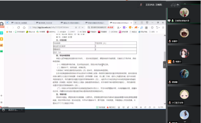 王婉君老师首先向大家介绍2022年推荐免试攻读研究生的工作实施细则,其中包括推免工作的基本原则、组织领导、申请资格、考核内容等。她表示每一年的推免政策都会有所变化,但是对成绩绩点和综测的要求是基本不变的。想要争取保研的同学除了保持积极健康的思想和优异的成绩外,还应当积极参加各种比赛;这既是对自己综合素质的锻炼,也是对自己的能力的证明。同时,老师还强调了英语学习的重要性,英语四六级成绩也是保研时考量的重要指标。