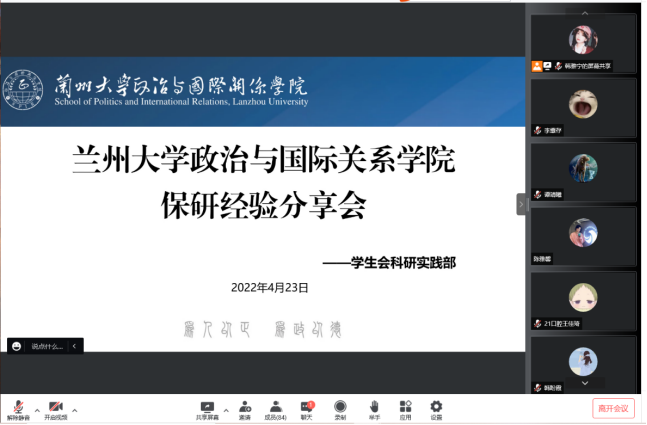 随后由胡龙彪和杜琴澳传递经验。胡龙彪从如何保研到兰大、培优计划的介绍、内保的优缺点三个方面来进行经验分享。他重点强调在保研结果没有出来之前,既要积极联系目标院校的老师,也要做好保研失败,继续考研的准备。他也从签定内保计划、参加夏令营等方面向同学们给出了自己的建议。杜琴澳在择校和是否选择跨专业方面给出了自己的意见:要事先做好功课,确定自己想学的专业是否可以在复习的阶段达到需要的水平。此外,她从夏令营、预推免和推免系统开通的后续操作三个部分向介绍她在各个时期的选择和经验,即如何最大限度的确保自身保研的成功率。既要注重对自己的能力的提升,也要根据实际情况选择最适合自己的策略。讲解完后,杜琴澳又回答了同学们提出的一些问题,帮助同学们对保研的流程和要求有更深入的认识。