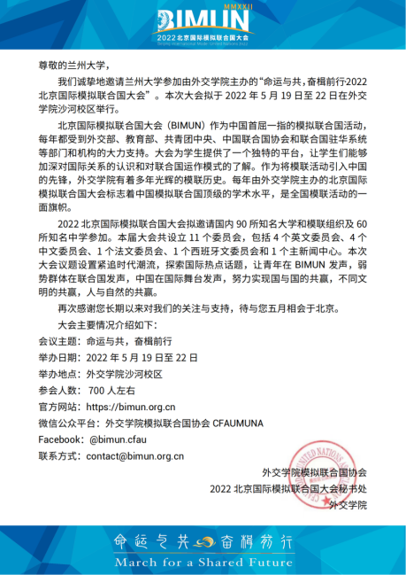 组织兰大学子参加2022年北京国际模拟联合国大会并斩获佳绩