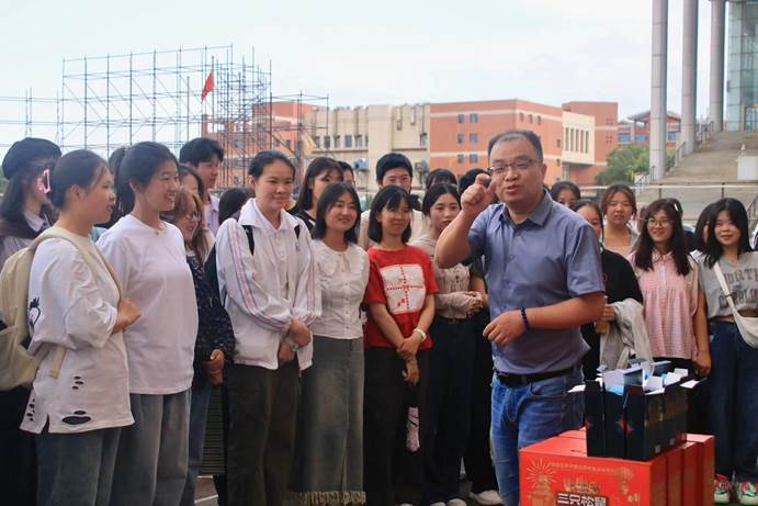 在训中的2023级新生,并向同学们隆重介绍了到场的老师,党委书记常虹向同学们询问军训相关内容与组织情况,了解新生军训感想体验及多样需求,肯定其高昂的斗志与精神面貌,副院长陈小鼎则告诫新生要增强适应能力,将军训作为从高中到大学跨越的支点,在接下来的训练中再接再厉,并向同学们致以节日关怀。
