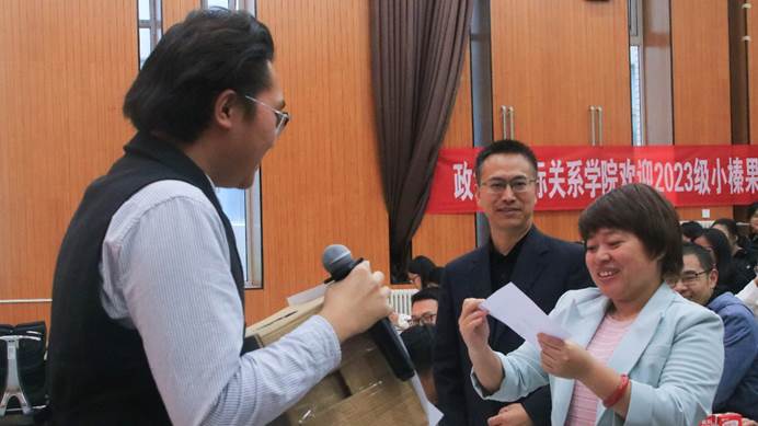 大会第一项,全体起立,奏唱国歌。庄严的国歌唱毕后,常虹书记代表学院党委宣读聘任2023级班主任、学生副班主任的通知并颁发聘书,学院在本学年决定聘任李泽博士担任2023级政治学类一班班主任,刘倩博士担任2023级政治学类二班班主任,2021级政治学与行政学班杨婷担任2022级政治学类一班副班主任,2021级政治学与行政学班李伟杰担任2023级政治学类二班副班主任。
