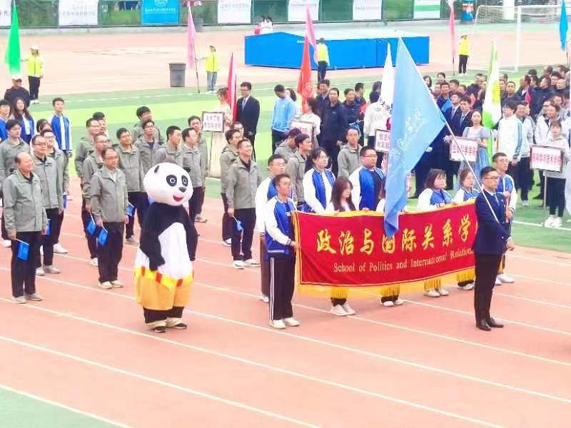 22日一早,操场上院旗飘扬,政国院的口号响彻云霄:“为人以正,为政以德!大成政国,公行天下!”。俯瞰赛场,政国院方阵统一着装,步伐矫健英姿飒爽,洋溢着青春与活力于赛场亮相。