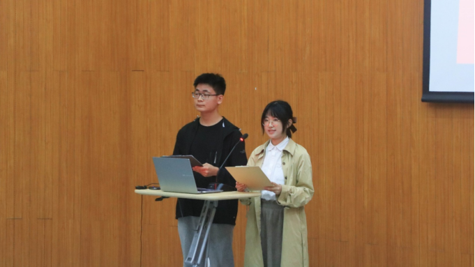 在学生代表发言环节,高年级学生代表罗子越和张炜恒同学寄语新生,努力方能不负韶华、奋斗才可见朝阳初升。2023级新生代表龙文萱、孔馨然、田时宇则与大家分享了入校以来的种种感想及心路历程,短短一月,未知迷茫与艰难险阻共存,泪水汗水过后迎来成长收获,行于萃英山下,阴雨连绵过后,光风霁月、飞虹漫天。