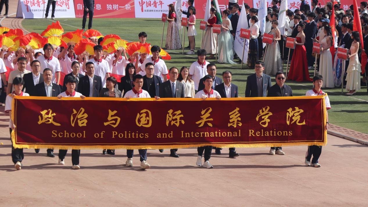 榆中校区西区田径场拉开帷幕,学院60余名师生参加了本次运动会开幕式。伴着激昂的乐声,国旗护卫队、彩旗方队、裁判员队伍、各学院方阵和各学生组织方阵依次入场,看台上的观众为各个队伍与方阵鼓掌喝彩。