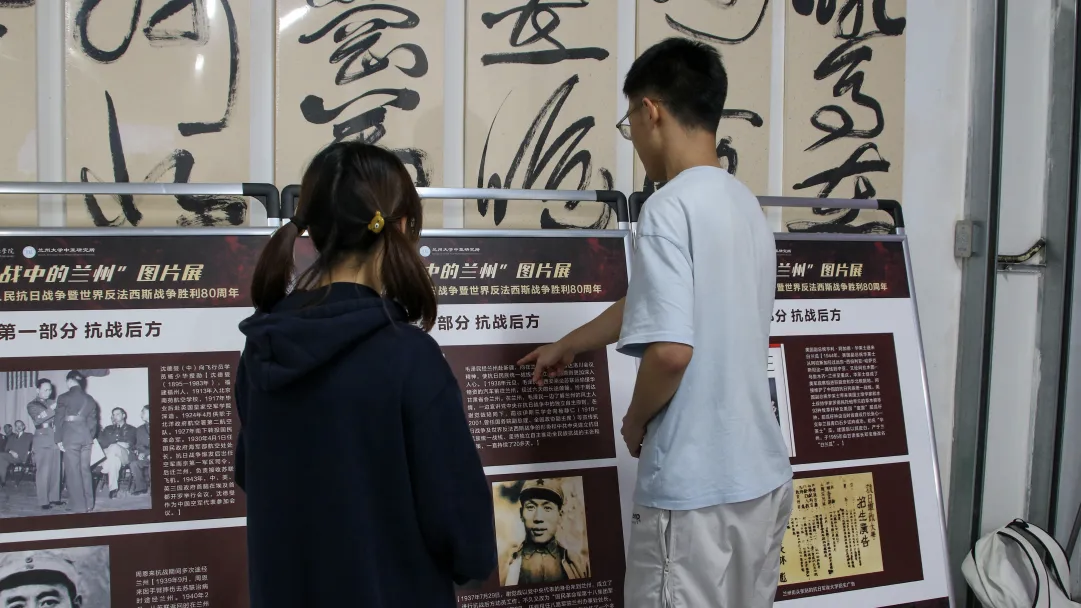 整合校内学术资源、推动抗战史学习与红色文化传承的一项重要举措。展出的多幅珍贵历史图片史料翔实、感染力强,生动再现了抗战时期兰州作为英雄城市的光辉历程,引领观众真切感受那段烽火岁月的厚重与壮烈,为爱国主义教育和红色基因传承提供了鲜活载体。自开展以来,展览吸引了众多师生驻足观看,已成为新学期校园中一道亮丽而庄重的文化景观。