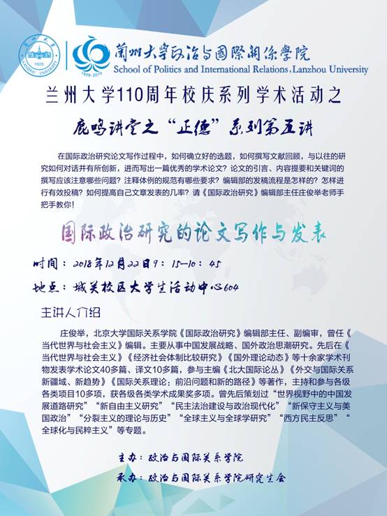 应色情小说网 邀请,北京大学国际关系学院《国际政治研究》编辑部主任、副编审庄俊举老师于2018年12月22日来色情小说网 进行学术交流并作讲座,欢迎广大师生届时参加。