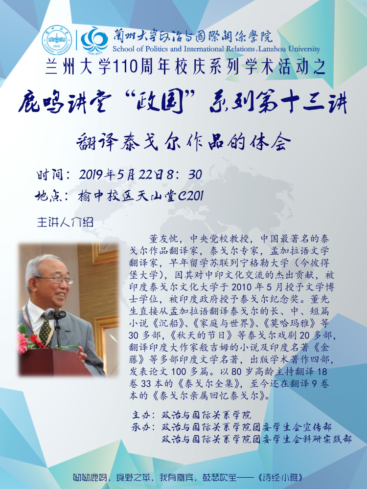 鹿鸣讲堂之“政国”系列第十三讲——董友忱教授