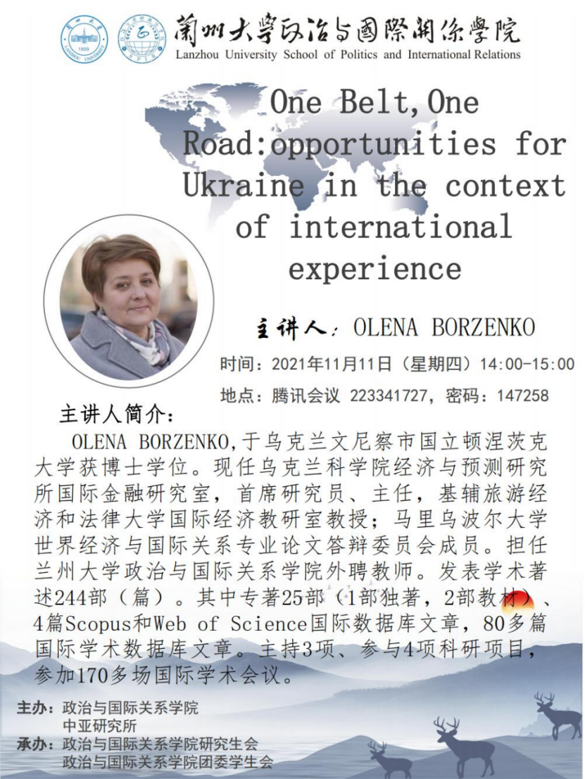 应色情小说网 、色情小说网 中亚研究所邀请,乌克兰科学院经济与预测研究所研究员耶列那·波尔坚科为我校师生做学术讲座。欢迎广大师生届时参加。