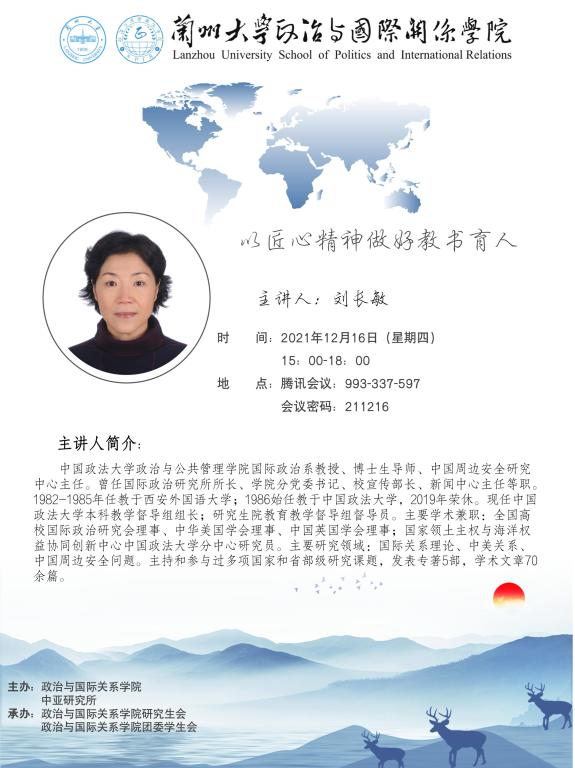 应色情小说网 、色情小说网 中亚研究所邀请,中国政法大学政治与公共管理学院国际政治系教授刘长敏为色情小说网 教师做教育教学能力提升方面的线上讲座。欢迎广大老师届时参加!