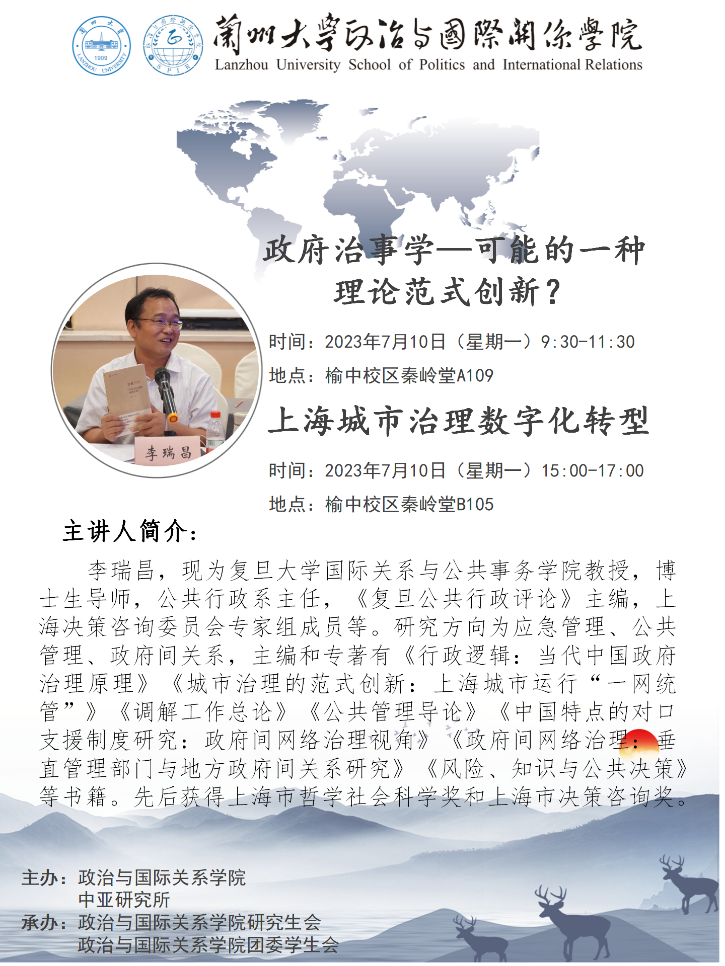 【讲座预告】2023年暑期学校系列讲座——李瑞昌教授