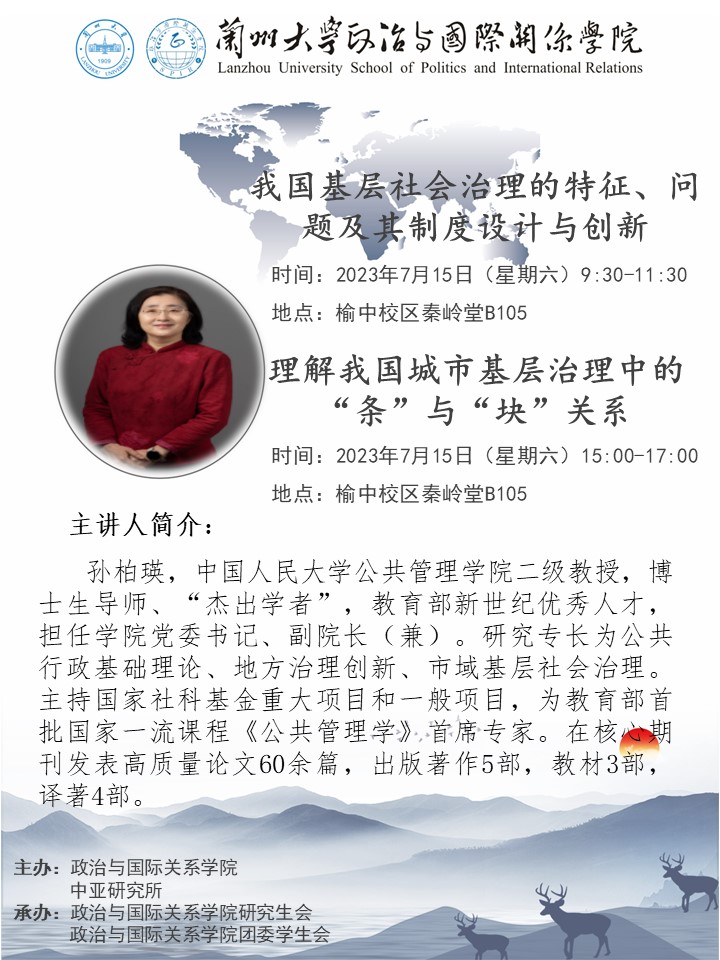 【讲座预告】2023年暑期学校系列讲座——孙柏瑛教授