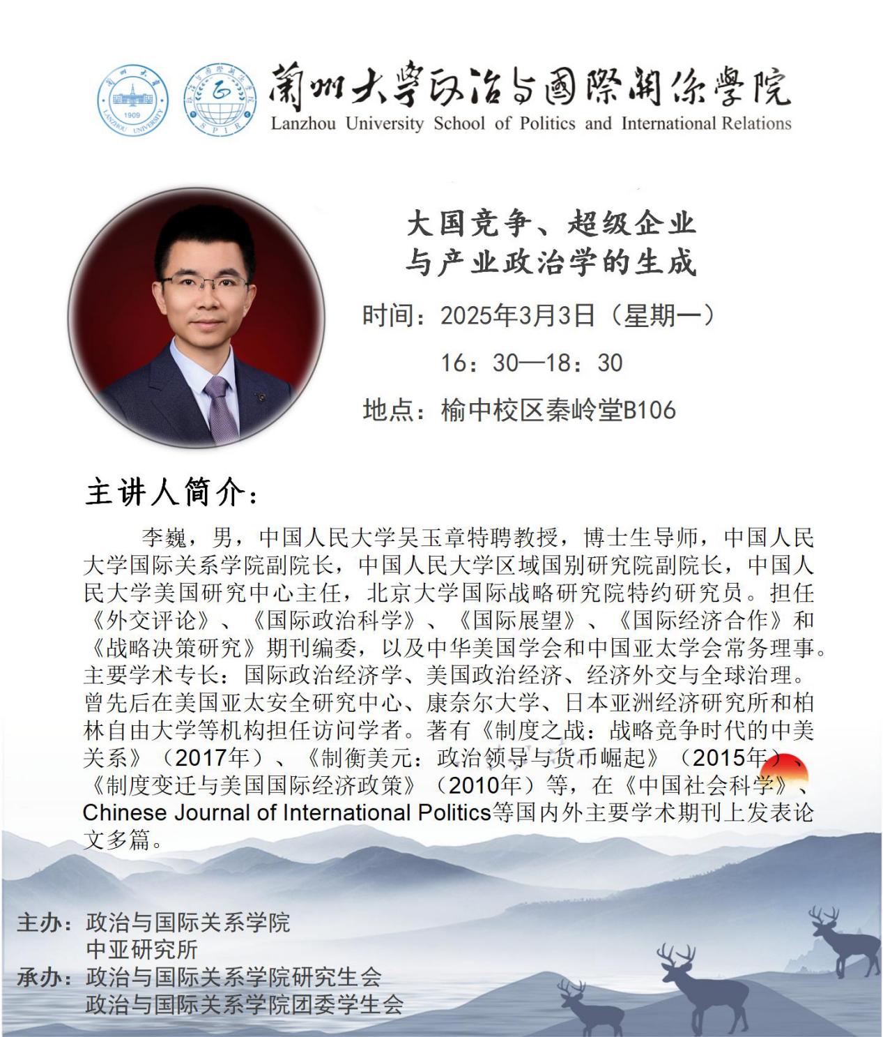 【讲座预告】鹿鸣讲堂“政国”系列第六十五讲——李巍