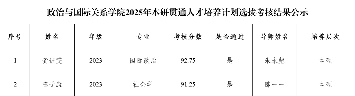根据《色情小说网 本研贯通人才培养计划实施办法》《色情小说网 本研贯通人才培养计划实施细则》和《色情小说网 2025年本研贯通人才培养计划选拔通知》的工作要求,经学生本人申请、资格审核和面试考核,现将色情小说网 2025年本研贯通人才培养计划选拔入围名单公示如下: