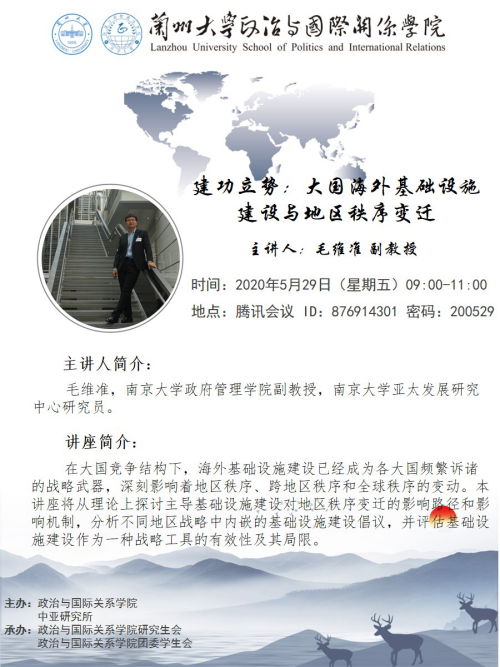 Invited by the School of Politics and International Relations of Lanzhou University and the Institute for Central Asian Studies of Lanzhou University,Professor Mao Weizhun from the School of Government,Nanjing University will give an online academic lecture to the teachers and students of the school.