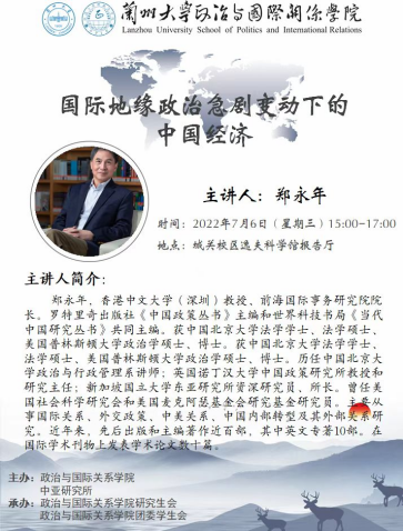 Invited by the School of Politics and International Relations of Lanzhou University and the Institute for Central Asian Studies,Zheng Yongnian, professorofThe Chinese University of Hong Kong,Shenzhen,will give an academic lecture for the teachers and students of our school. All teachers and students are welcome to attend.