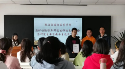 Deputy Party Secretary Jia Haiyan announced the list of excellent graduate students in the academic year of 2019-2020, and presented awards to Ms. Li Linlin, the outstanding graduate of Gansu Province and Lanzhou University in 2021, Mr. Zhao Lei, Ms. Cao Jialu and Mr. Wei Chenyu, the outstanding postgraduates and Ms. Wang Wenjie, the Excellent Leader of student union. After that, Mr. Jia Haiyan announced the list of excellent classes and neat dormitories for postgraduates. The class 2019 and 513 dormitories for female students receive the awards.