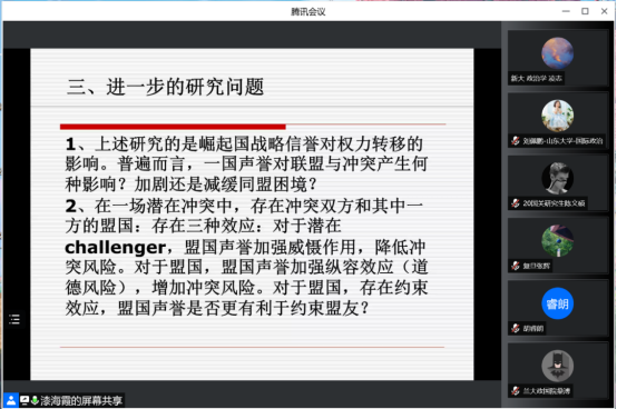 At the beginning of the lecture, Professor Qi Haixia stressed that two important issues that we need to consider and address are how to make our research solid and how to push the discipline of international relations to make it more valuable. According to Professor Qi, there are three necessary conditions for theoretical innovation, namely a deeper understanding of existing research, a deeper investigation of the mechanisms behind the issues under study, and a rational application of methodology.