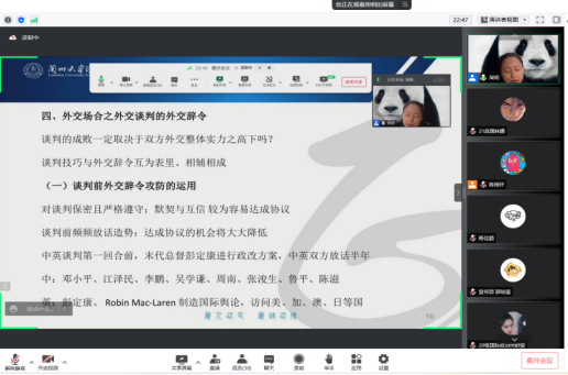 In the training module of the subject competition, the School conducted pre-competition training for the "I am a Diplomat" competition. Three teachers, Ms Zhou Ming, Ms Sun Xiowen and Mr Cao Wei, gave lectures on diplomatic protocols, the art and techniques of negotiation, and current affairs analysis and summaries to develop students' awareness of the professional competition. This will not only help students to understand the contents related to the work of diplomats and broaden their international perspective, but also help to enhance their sensitivity and analytical ability in current affairs, laying a solid foundation for them to participate in relevant competitions.