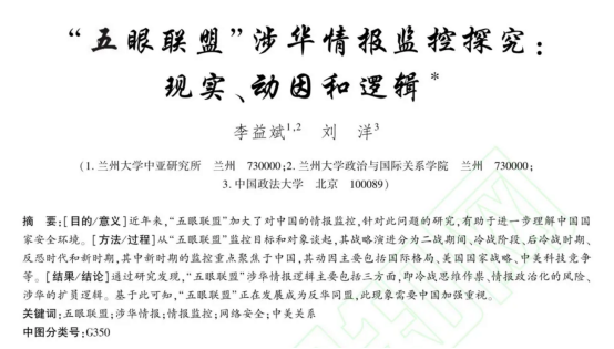 Research on the Intelligence Monitoring of China Related to "Five Eyes Alliance": Reality, Motivation and Logic