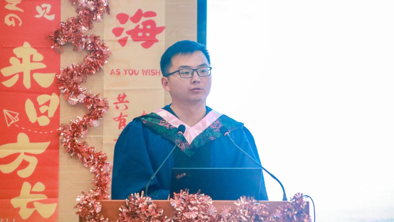 活动第二项,朱永彪院长致辞。他首先向全体毕业生表示热烈祝贺,为大家圆满完成这一阶段的学习旅程送上诚挚的祝福。朱永彪老师表示,同学们在见证学院发展与壮大的同时,更以实际行动积极投身学院建设,为学院赢得了诸多荣誉。随后,朱院长寄语毕业生,尽管部分同学即将迈出校园,步入职场,但他希望大家始终保持学习的状态,怀揣对生活的热爱与自信,不论身处何地、面对何事,都要坚定地相信自己。